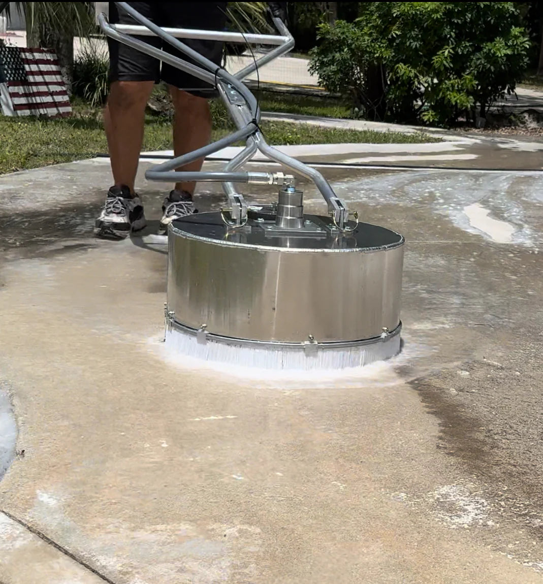 Introducing The Stripinator, Hi Low Solutions' newest innovation in surface cleaning, specifically designed to strip off paver sealer. But it doesn't stop there—it can also tackle paint and line stripe removal with ease.